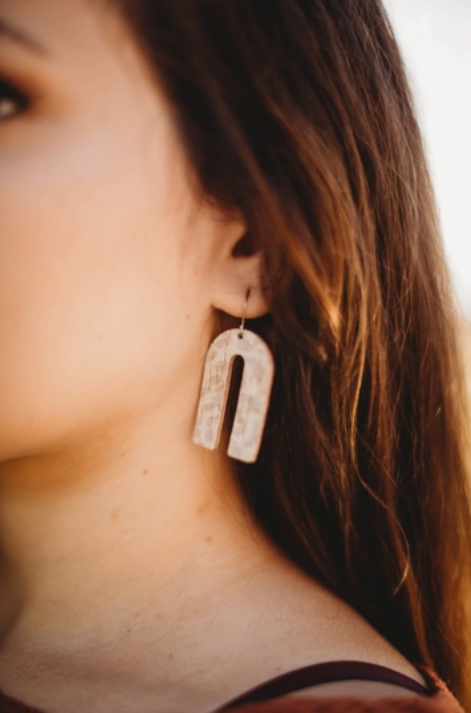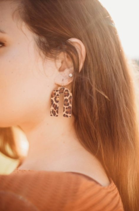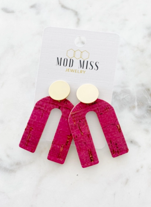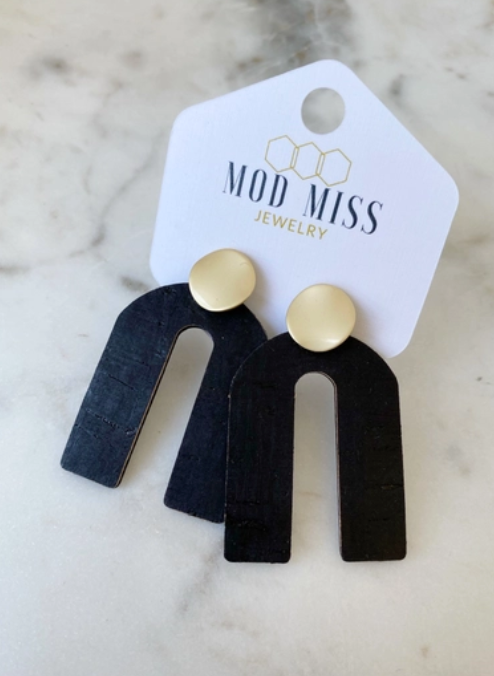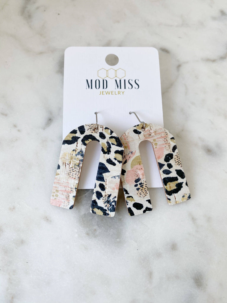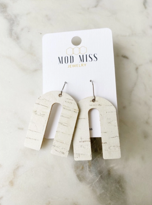 Trendy statement earrings with a fun modern look. These cork leather earrings have a bold arch shape. This listing is for one pair of 1.5 inch leather earrings. These fun earrings are made with high quality cork on the front and veg tan leather in the back to ensure they keep their shape. The ear wire is stainless steel for sensitive ears.