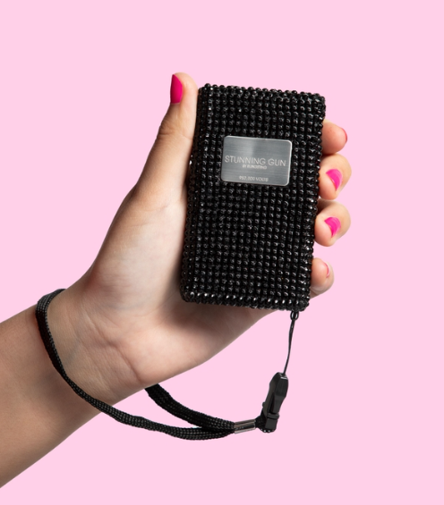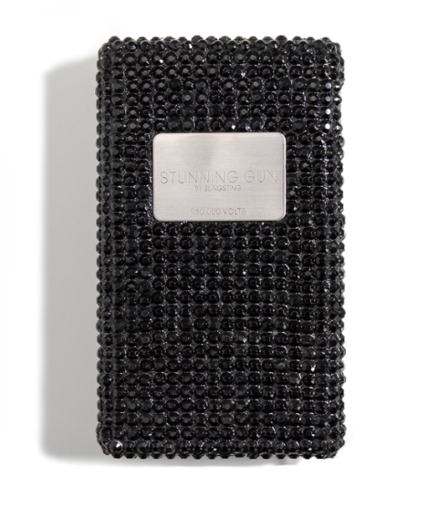 950,000 volts. Sparks and sounds for immediate attention. Safety switch prevents accidental discharge.