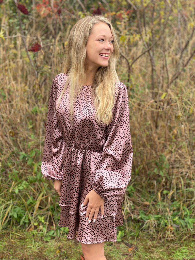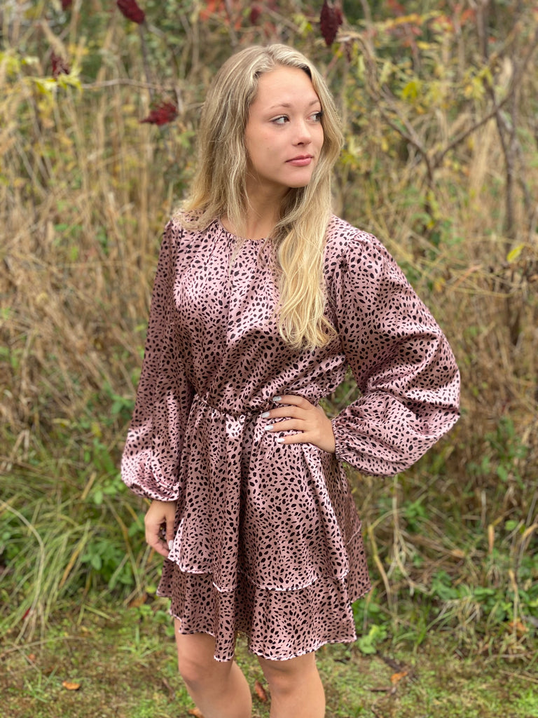 Printed long sleeve mauve dress